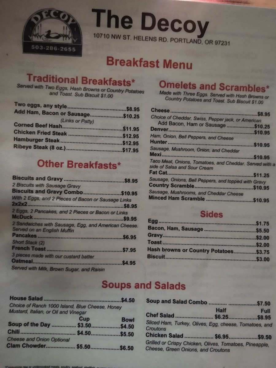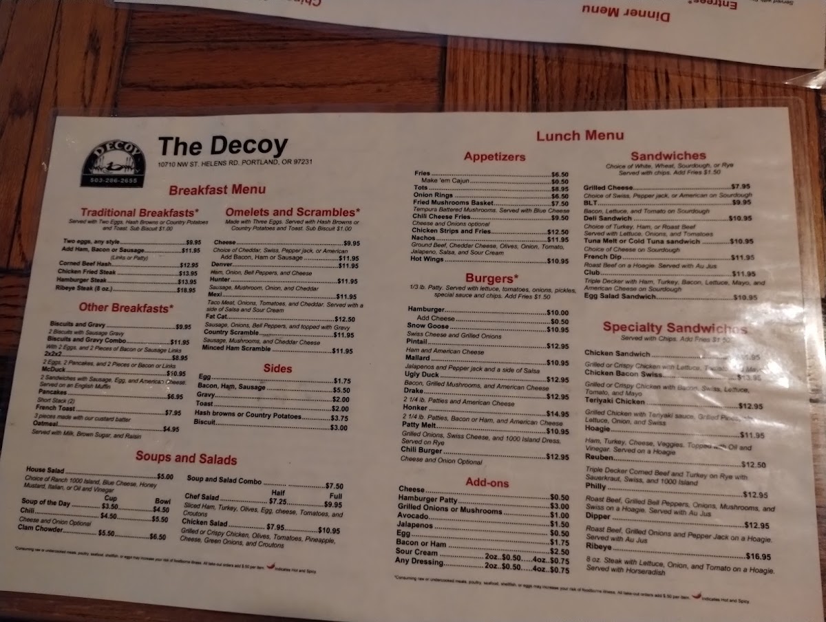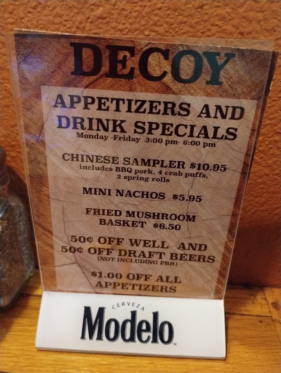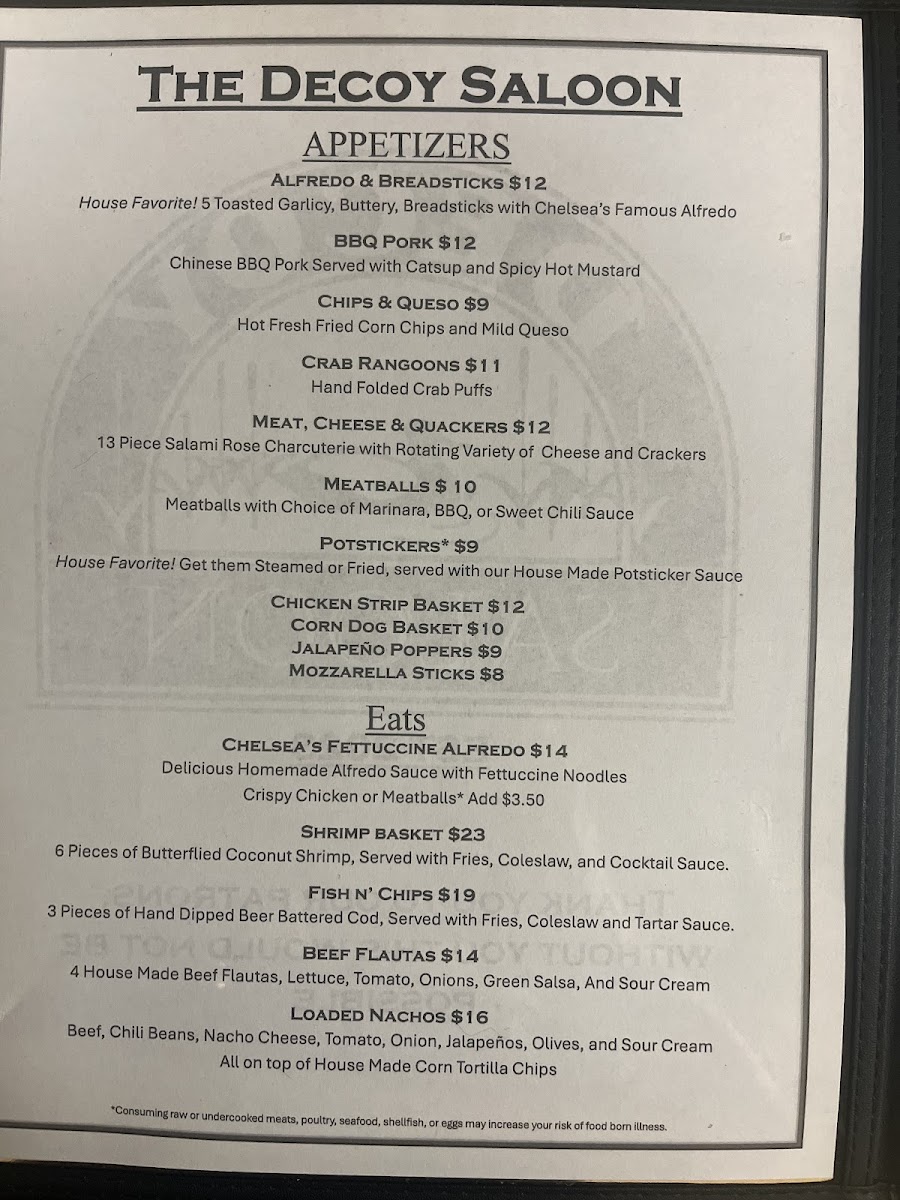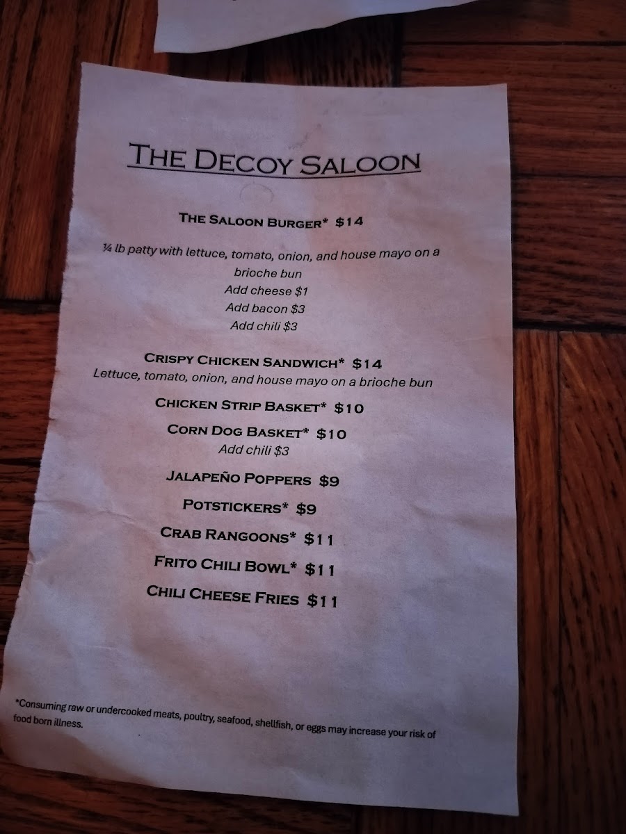 Decoy Saloon Menu